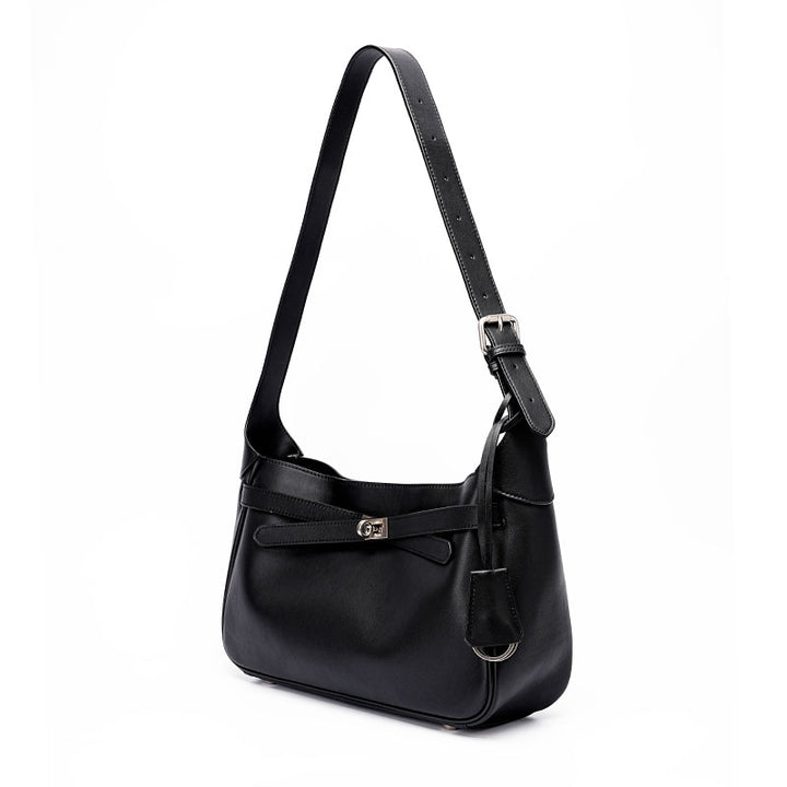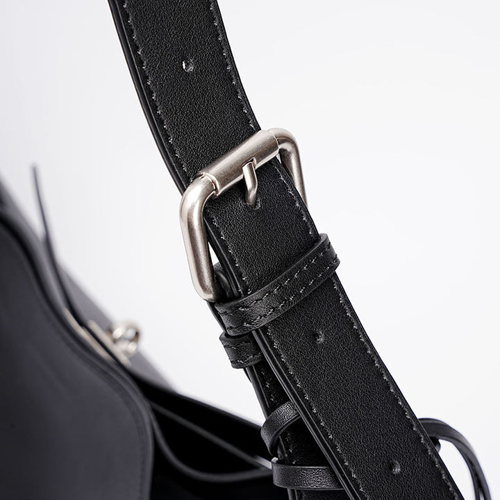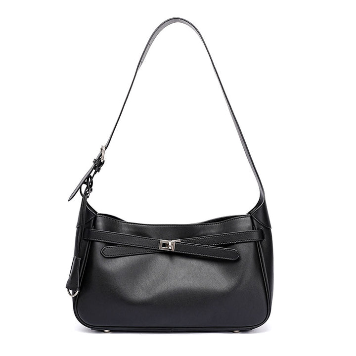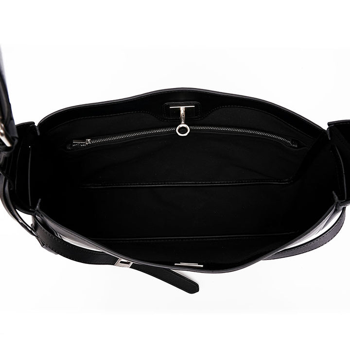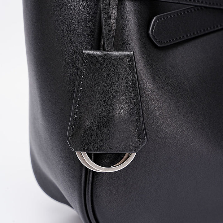 Black fashionable top layer cowhide large capacity tote handbag
