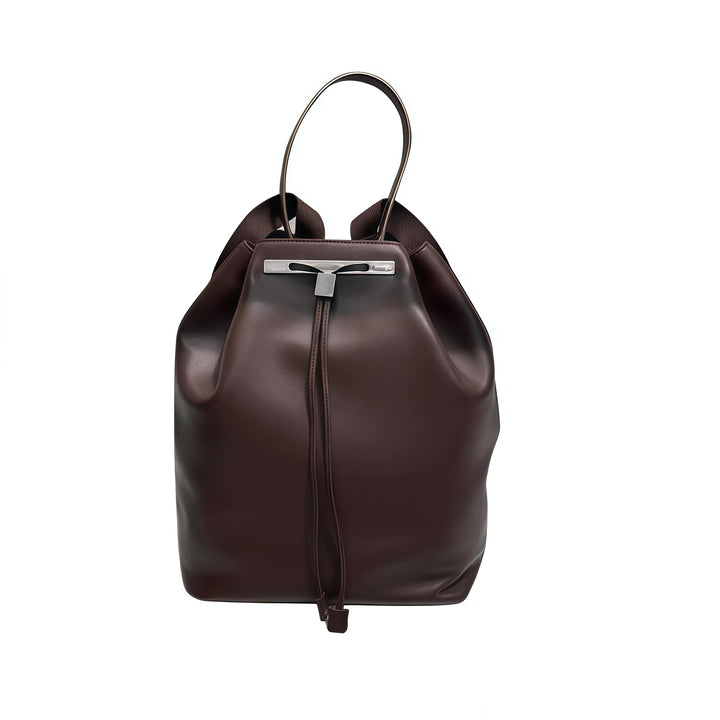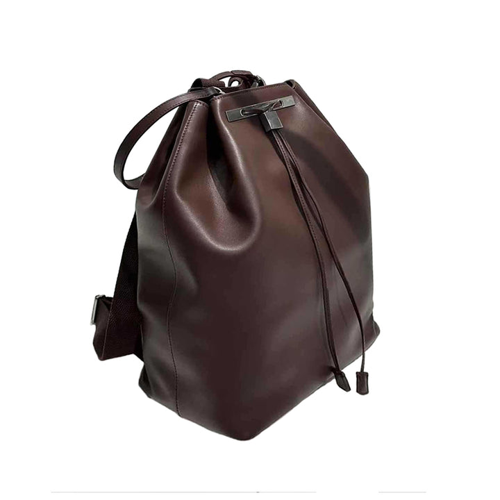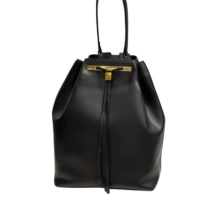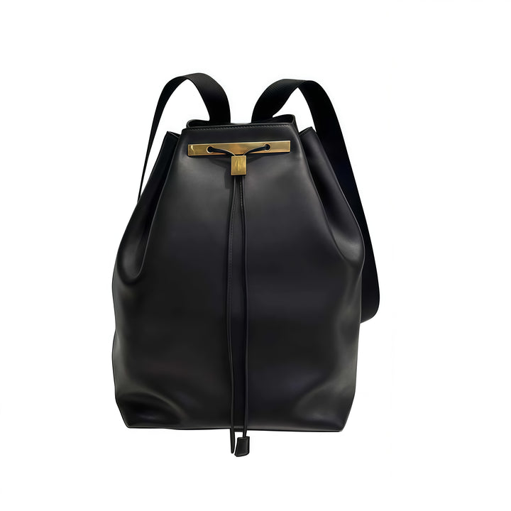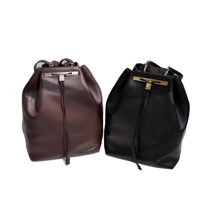 Calf leather backpack tote bag buckle leather handbag drawstring commuting large capacity women's bag