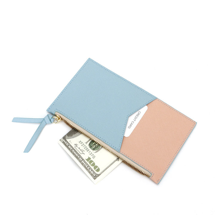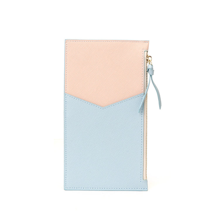 Customized cross pattern cowhide women's wallet RFID Korean version contrasting color design genuine leather zipper wallet hot stamping logo