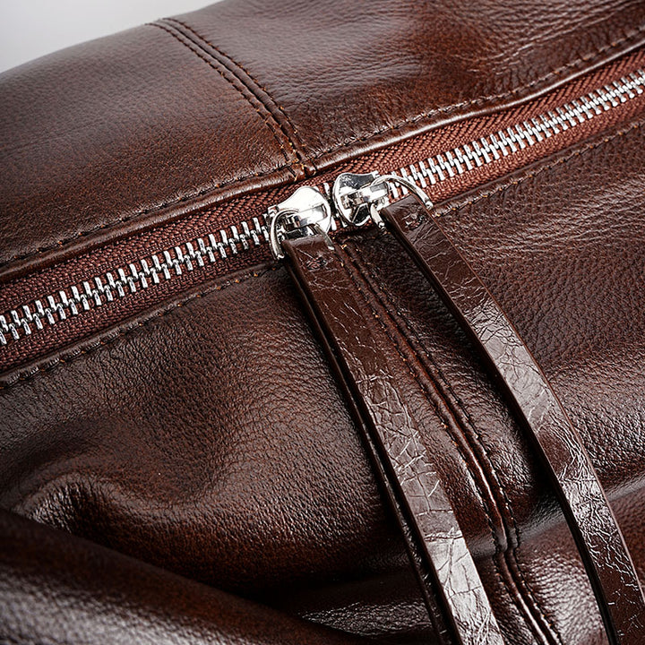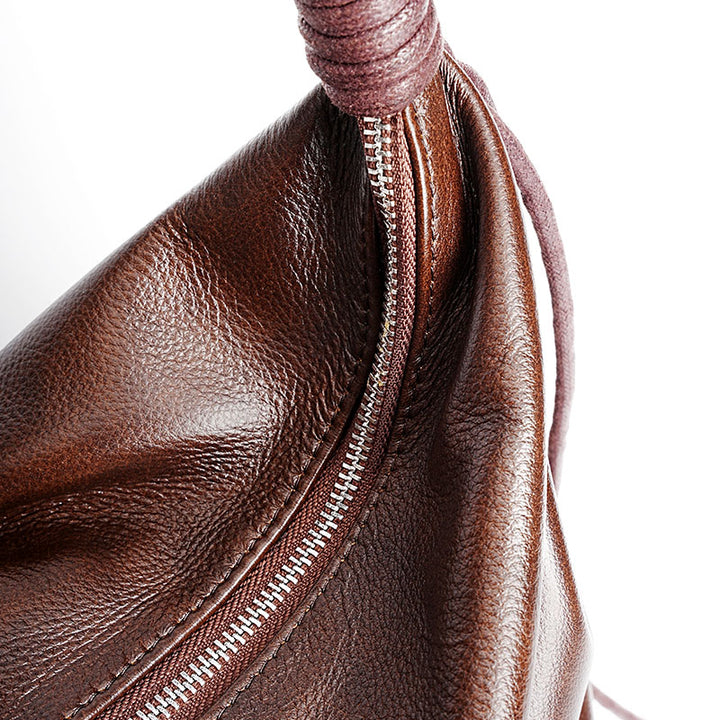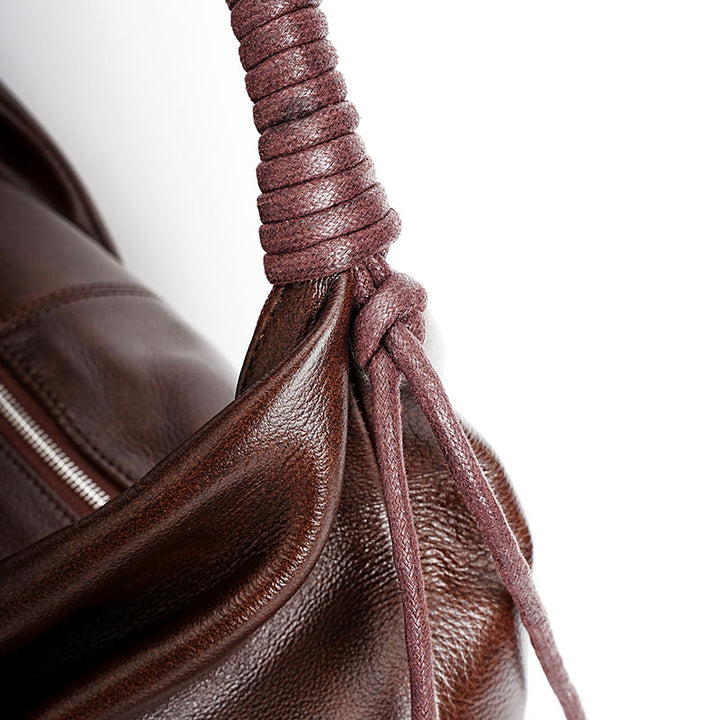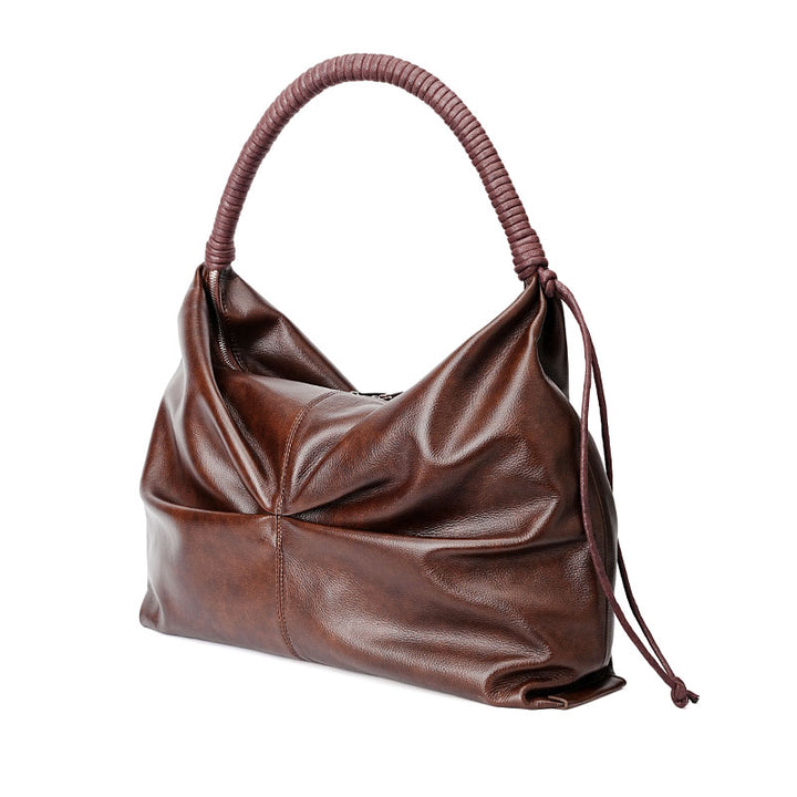 Elegant brown leather strap woven handle women's multifunctional handbag