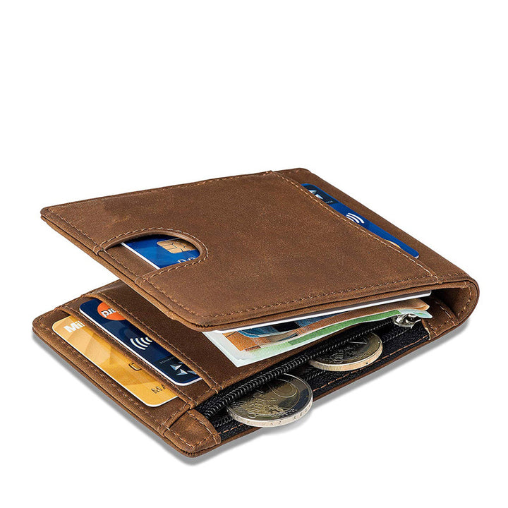 RFID wallet leather top layer leather laser logo wallet men's leather wallet wallet custom logo