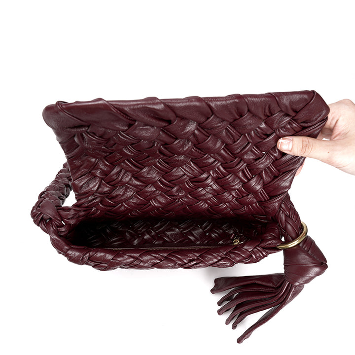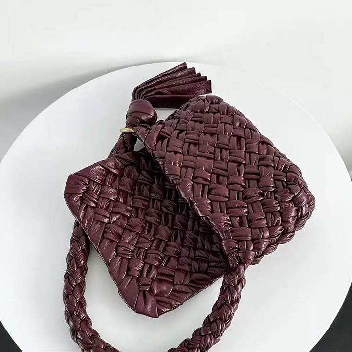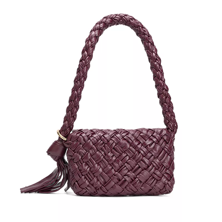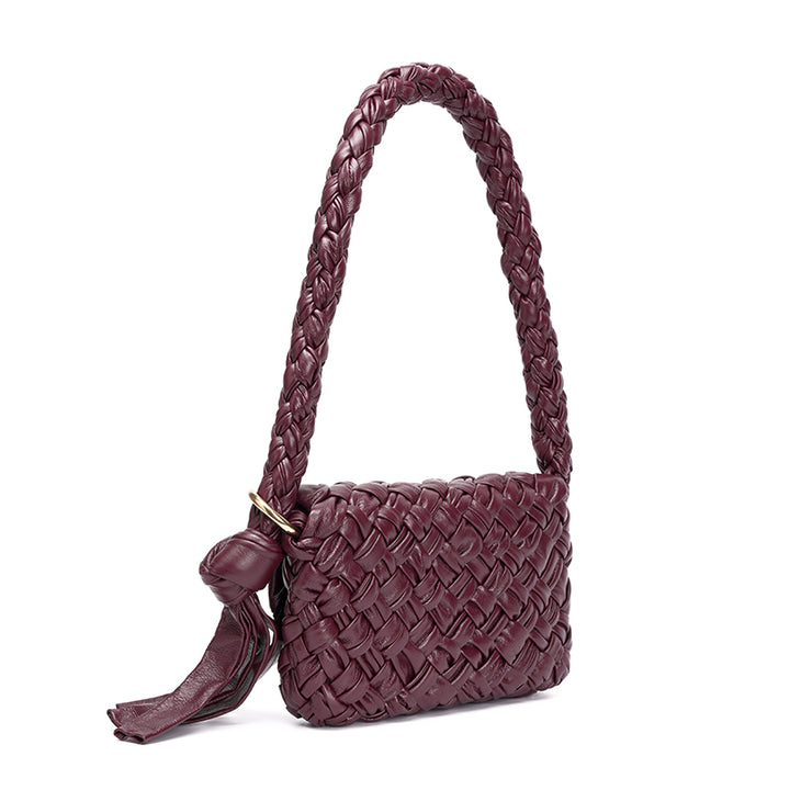 Trendy Claret Woven Leather Bags Shoulder Bag