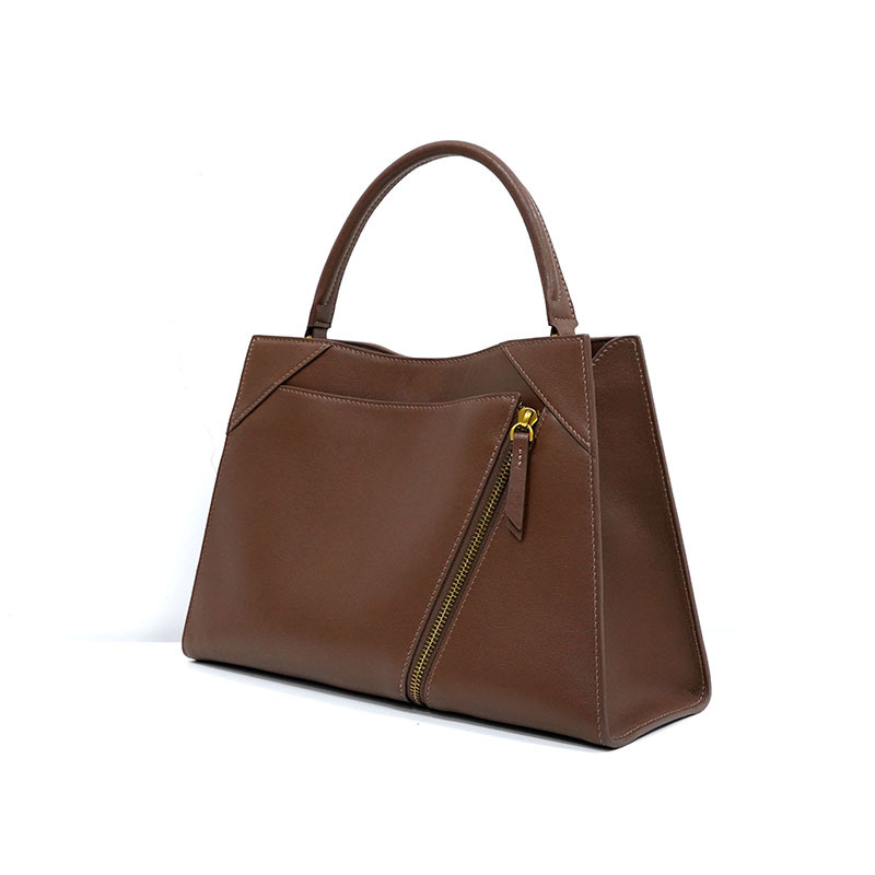 This asymmetrical zipped Genuine leather handbag combines modern elegance with refined practicality. Made from high-quality full-grain leather, it features a simple and sharp design. On the front, there is a unique angled zipper, adding a touch of modernity to its timeless look.